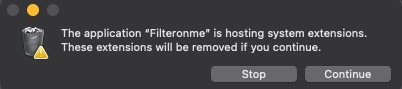 With Filteronme open, go to the top left corner menu and click on Advanced, go to Uninstall Extension (this is available on Filteronme 2.1 & up, skip if on an older version)