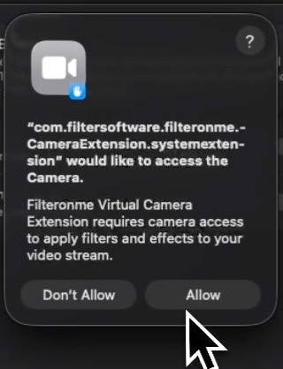 Stuck setting up Filteronme on Mac - Reinstall camera extension